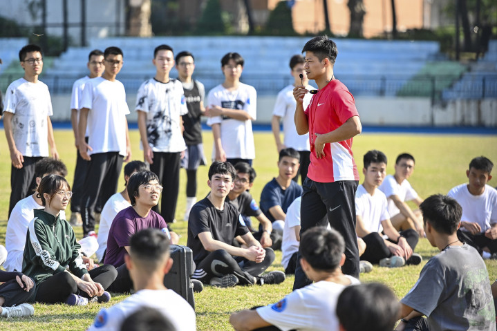 苏炳添在暨南大学开课讲授短跑技巧。图/VCG